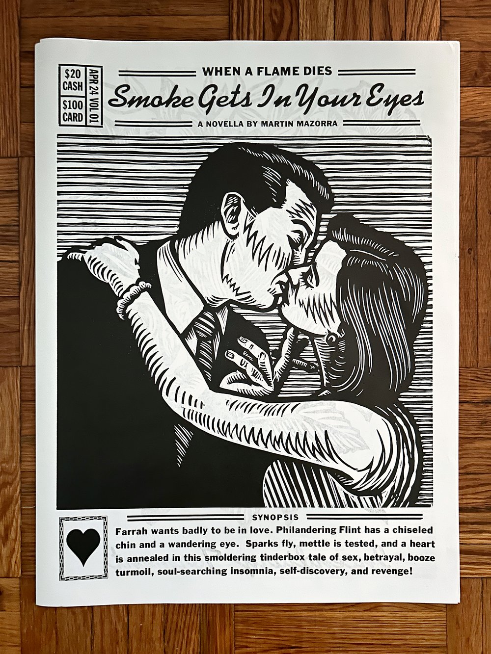 A twelve-page, smoldering tinderbox tale, each 18" x 24" page composed of hand-printed woodcuts and hand-set vintage letterpress type.